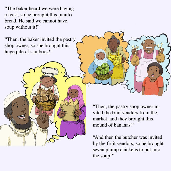 A spinoff of the classic “Stone Soup” folktale, Bismillah Soup is a story about Hasan, a young Somali boy who ventures out to gather his community together for a great feast at the local Mosque!