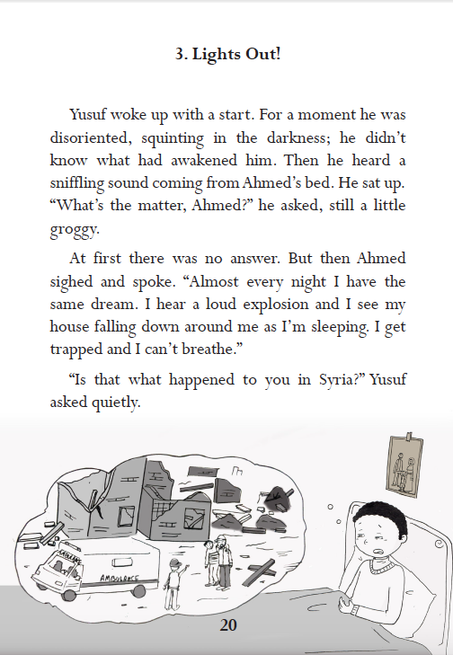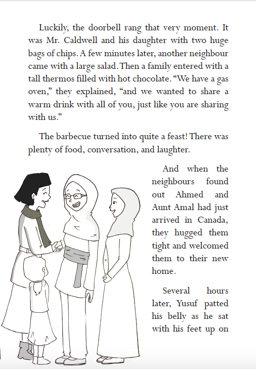 Yusuf’s cousin Ahmed is a Syrian refugee. After the death of Ahmed’s father, Yusuf’s parents work hard to bring Ahmed and his mom to Canada.