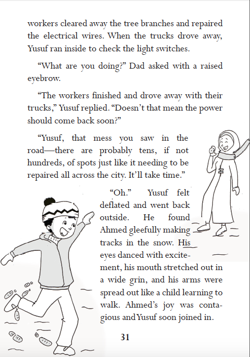 But when an ice storm hits during Ahmed’s first night and cuts off power for three whole days, Yusuf realizes that he’s the one with so much to learn.