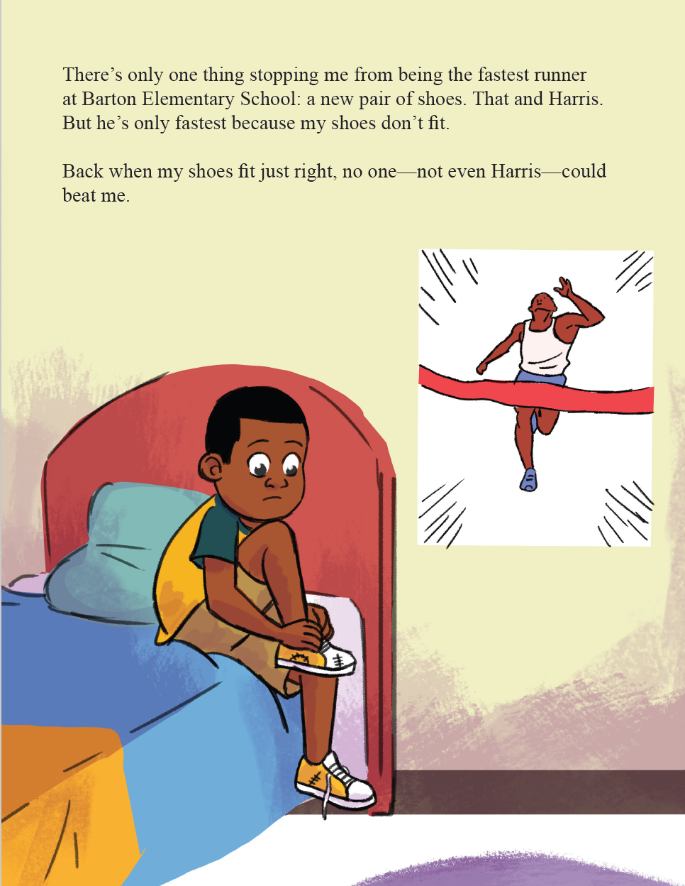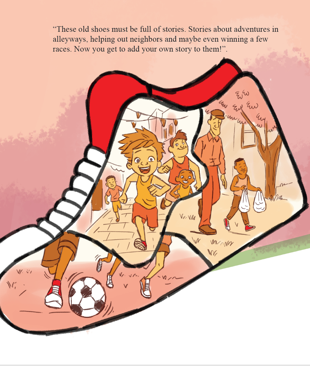 Idrees dreams of being the fastest runner at school. There’s just one thing stopping him: his old, worn-out shoes. Luckily, his Mama promised him a new pair. Idrees can’t wait to try them out…until he finds out they aren’t new at all. They’re used! Idrees is worried about wearing the old shoes but soon learns the power of adding a new story to an old pair of shoes.
