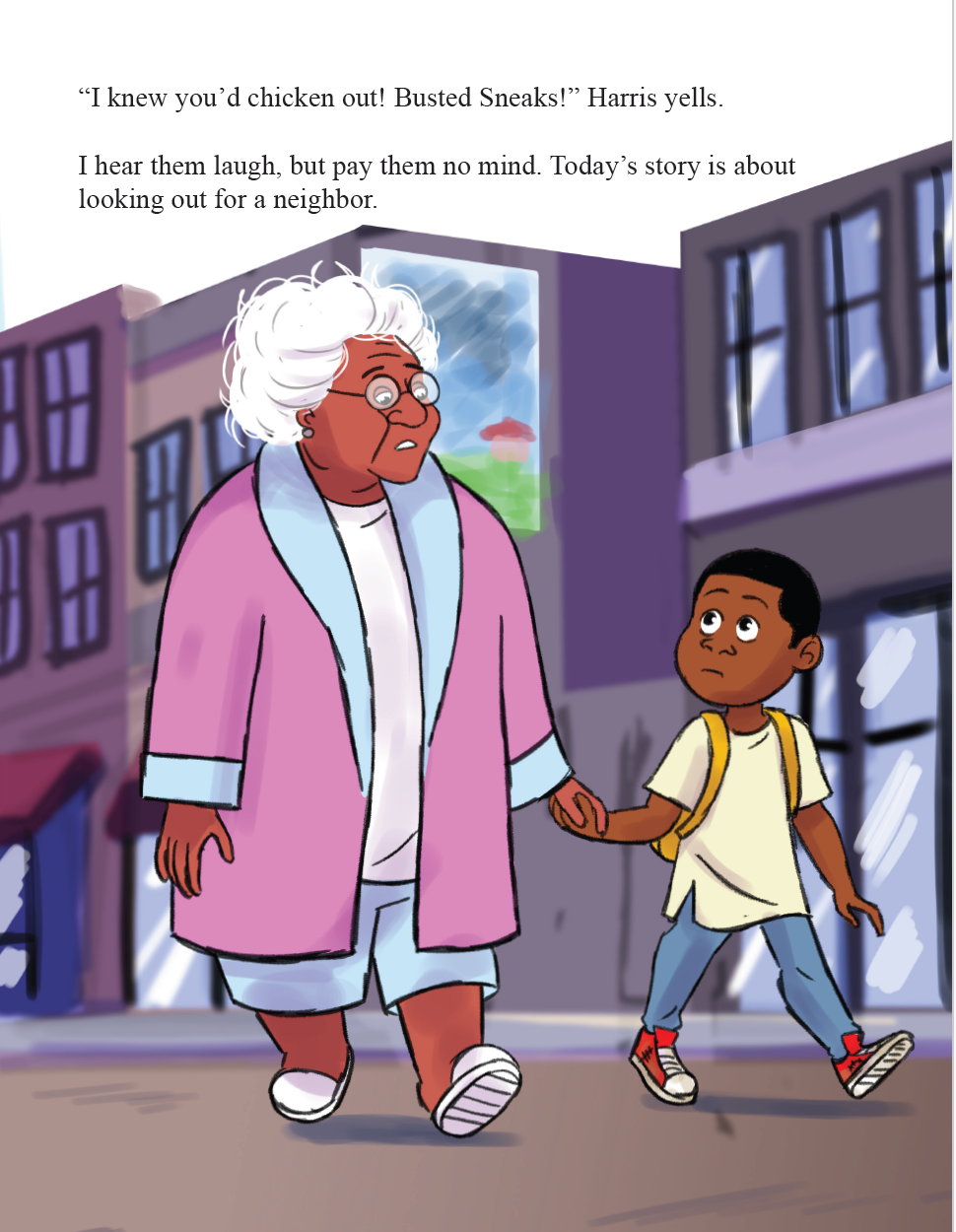 The character of Idrees is realistic and speaks like any child would and the mother is very calm and kind. I love how Ruqaya's Bookshelf books teaches lessons in a really fun way, and without being didactic. I loved how Idrees was in a dilemma and we see real time how he makes a choice - to do the right thing. Looking out for our friends and neighbors is the only way to true success.