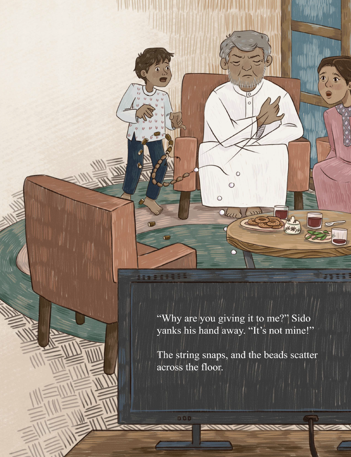 Musa’s grandfather made his very own masbaha two years ago, when he started losing his memory. Each bead carries a story, and Musa loves to hear the stories again and again. But as time passes, Sido’s stories are slipping away. Then the masbaha tears, and the beads scatter everywhere. How will Musa come to terms with everything that’s changing with Sido?