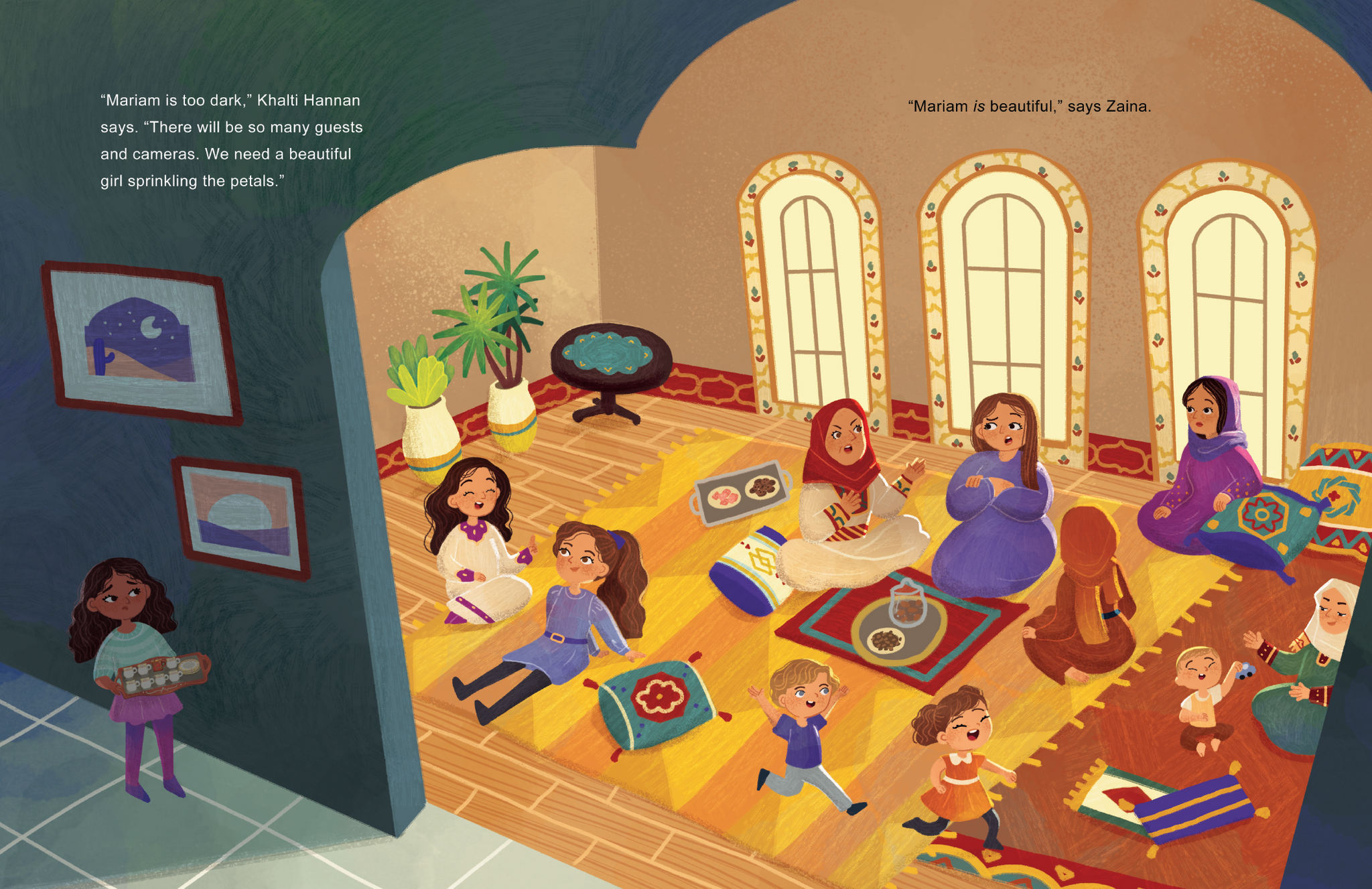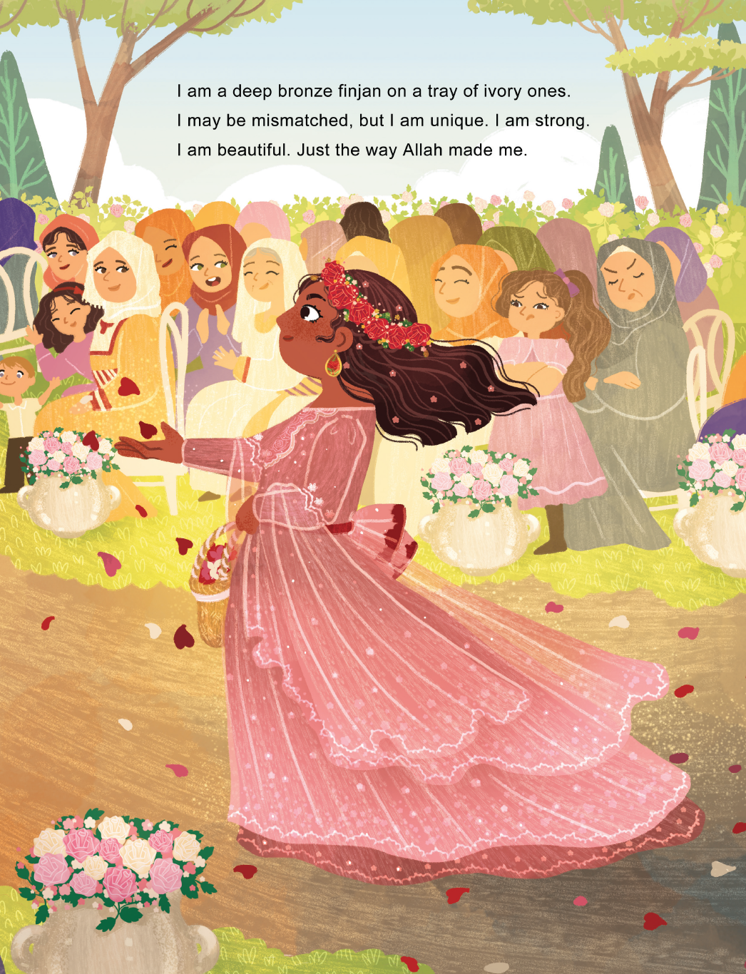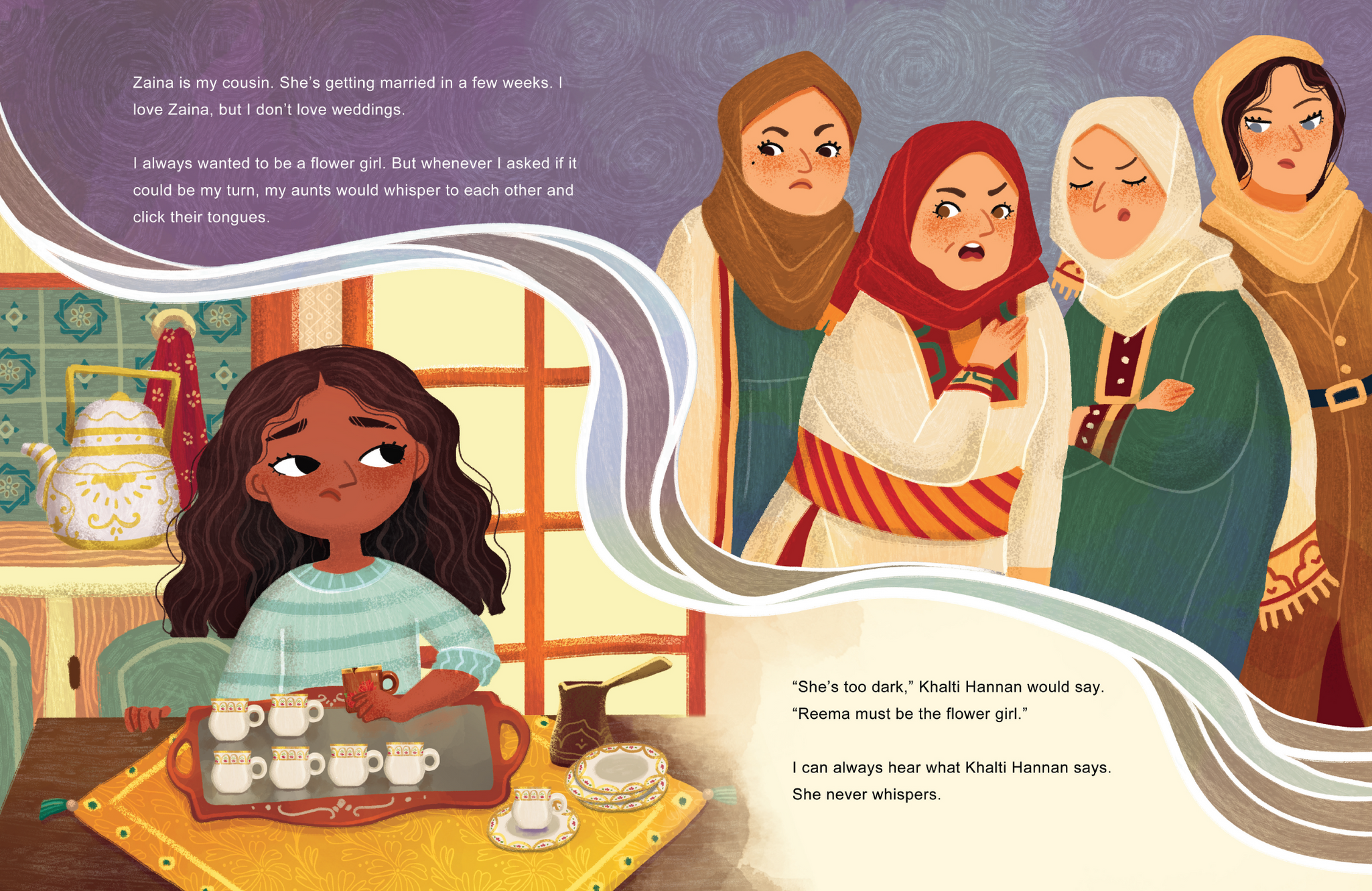Mariam has always wanted to be a flower girl, but her aunts and cousins say she's not the right choice because of her skin tone. Now Mariam hates weddings. When her cousin Zaina chooses Mariam to be flower girl at her wedding, she is excited! But will Mariam be able to stand proudly in the face of unkind comments and take her place as flower girl?